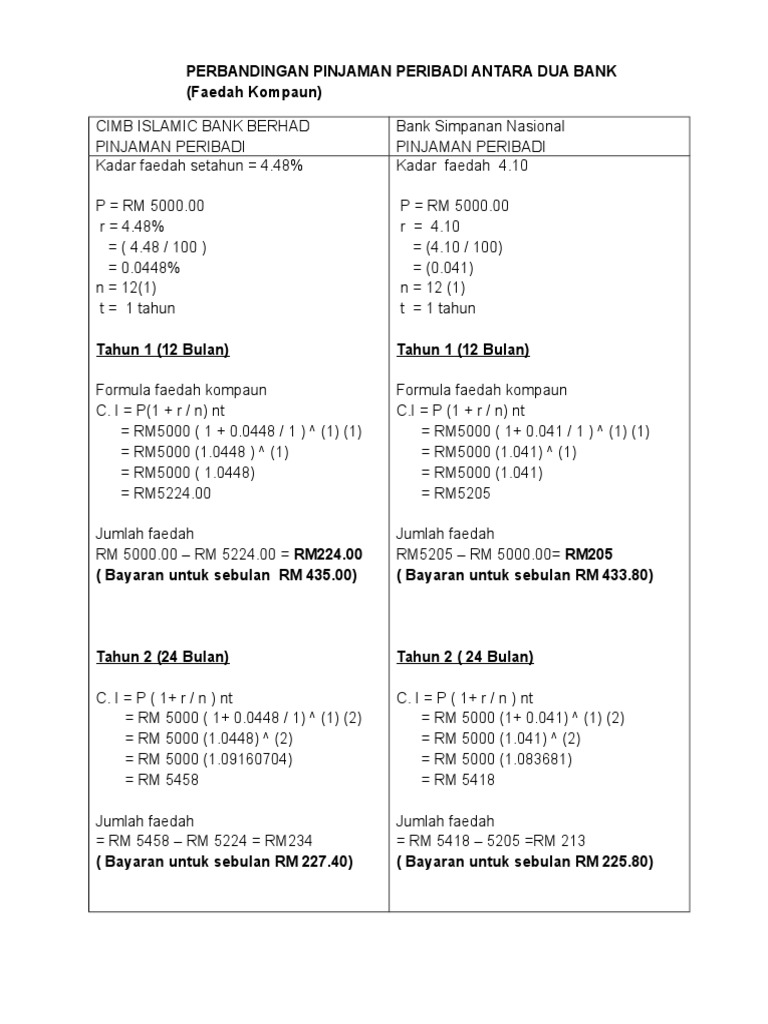 100 x 05 x 1 tahun 5. Di mana n bermaksud jangka masa dan i adalah kadar faedah yang dinyatakan. Jumlah Pinjaman Asal x Bilangan Tahun Pinjaman x Kadar Faedah Setahun Bilangan Ansuran bulan Faedah Dibayar Setiap Ansuran.