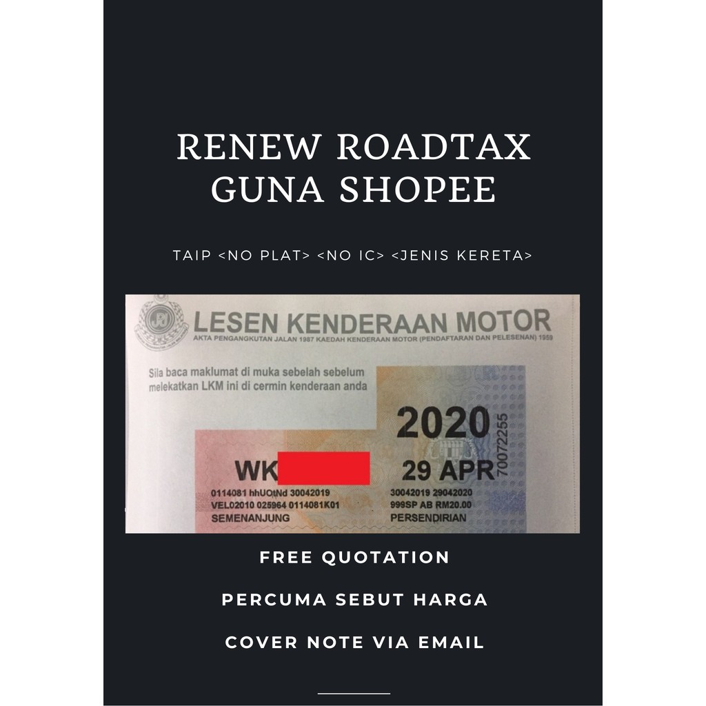 Fast Delivery Roadtax Insurans Takaful Kereta Motosikal Sebut Harga Quotation Shopee Malaysia